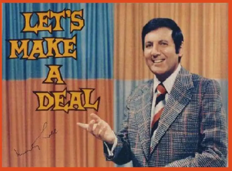 Итак, вся эта штука началась в 1963 году в телешоу Let’s make a deal («Давай совершим сделку»). Как это следует из названия программы, это шоу посвящалось различным сделкам. Сделки могли быть абсолютно любыми, ограничиваясь только полётом фантазии создателей шоу. Могли быть типа нашего Якубовича и его чёрного ящика — повышаем цену, спрашиваем игрока, берёт деньги или содержимое. Повторить десяток раз. Или предлагали определить вес участника и побеждал тот, предположение которого будет ближе к истине. Могли выдать неизвестный предмет и предложить оставить его себе, или обменяться с кем-нибудь другим на что-то другое неизвестное. В общем — безграничное веселье через край. И вот в этой передаче появилась такая штука, как три двери.